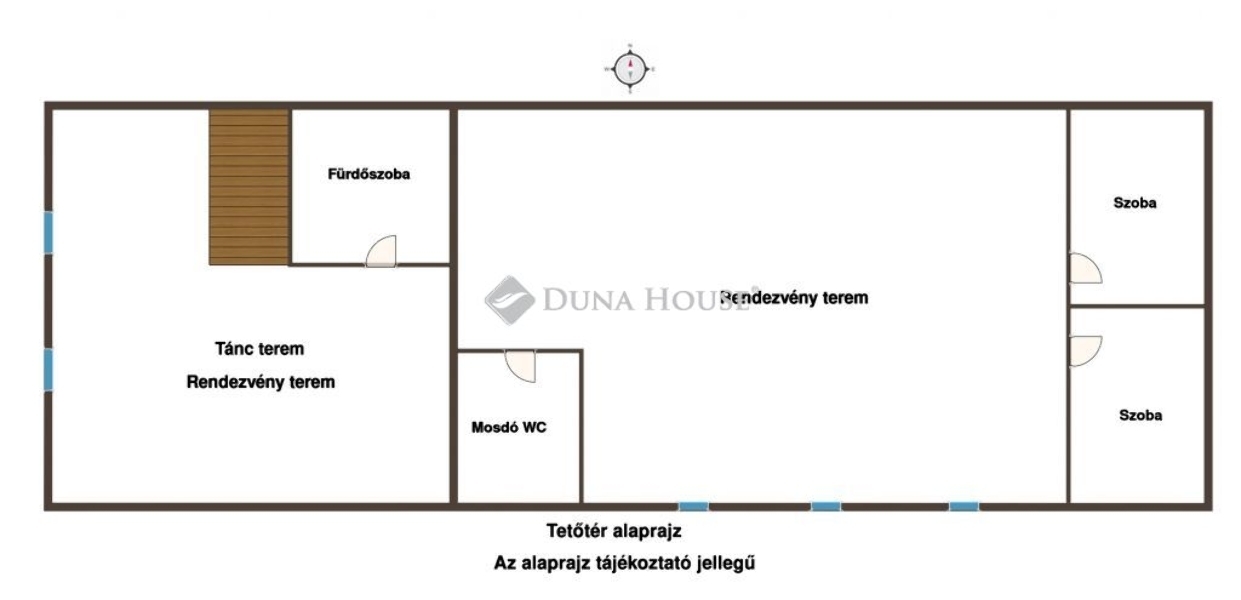 beépített tetőtéri teremmel összesen 223 m²