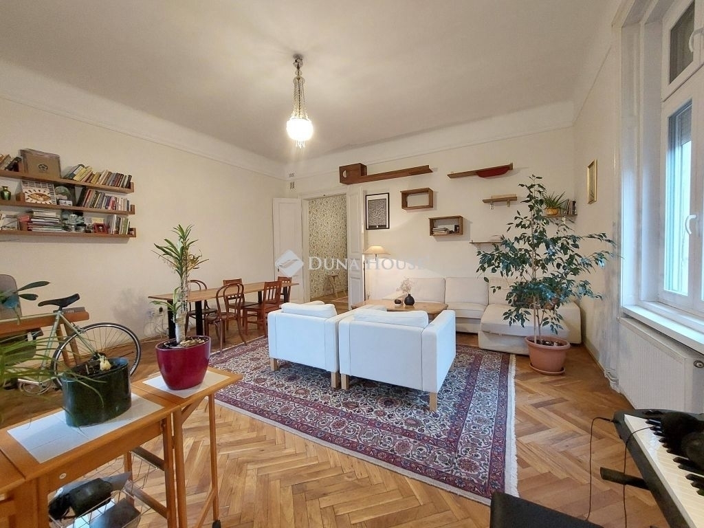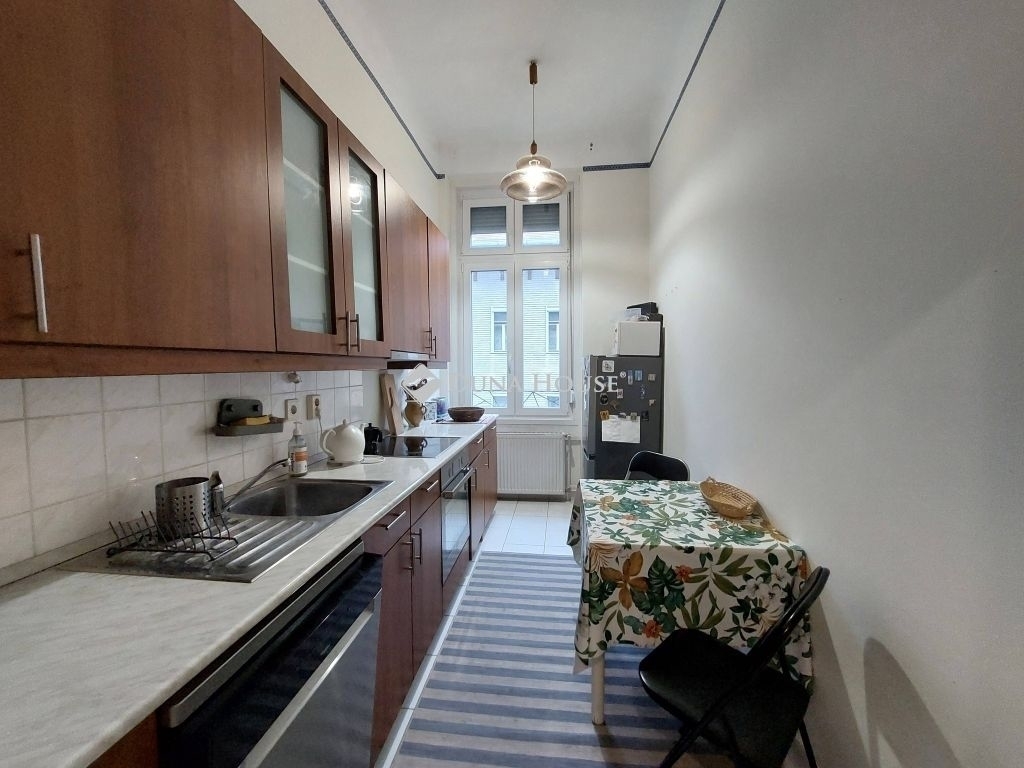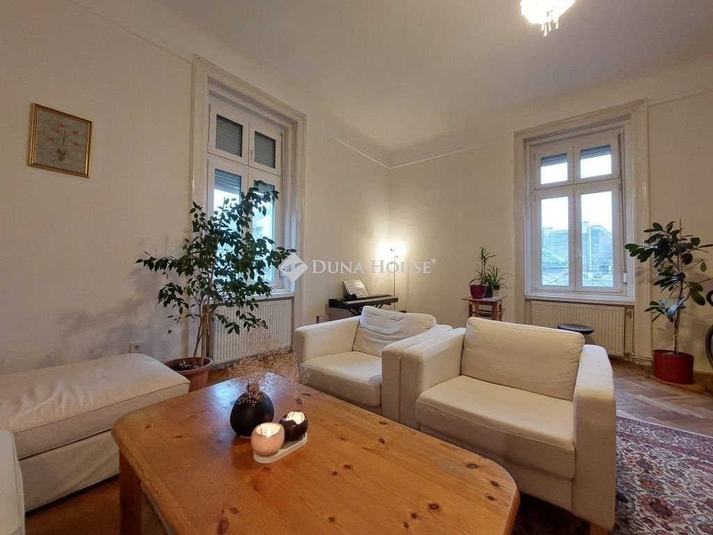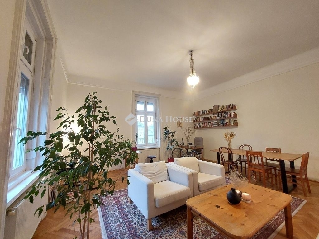 ALMÁSSY TÉRRE NÉZŐ, városi PANORÁMÁS, hangulatos, 72 m2-es magasemeleti, napfényes, saroknappalival, külön konyhával, hallal, tágas hálószobával és fürdővel, kamrával rendelkez, jó állapotú lakás eladó lift nélküli, felújított homlokzatán igényes eklektikus díszítésű ház emeletén!