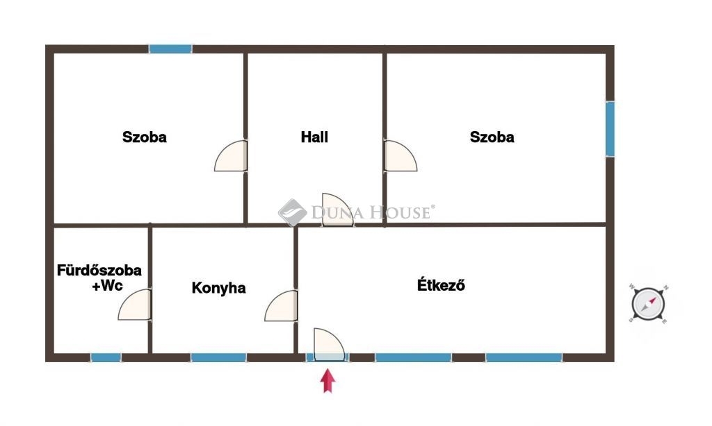 A házban két különnyíló szoba, egy hall, egy nagy ablakokkal ellátott étkező, egy konyha, és egy fürdőszoba + wc helyiségek találhatóak. Elrendezése okán fiatalok, kisebb családok, idősek számára is ideális választás. A ház oldalirányban bővíthető, továbbá a telken található 35m2-es, jól megépített nyári konyhát is át lahet alakítani lakhatási célra, mellyel akár két generációnak, idős hozzátartozóval, vagy már önálló gyermekkel költözőknek is remek lehetőséget kínál.