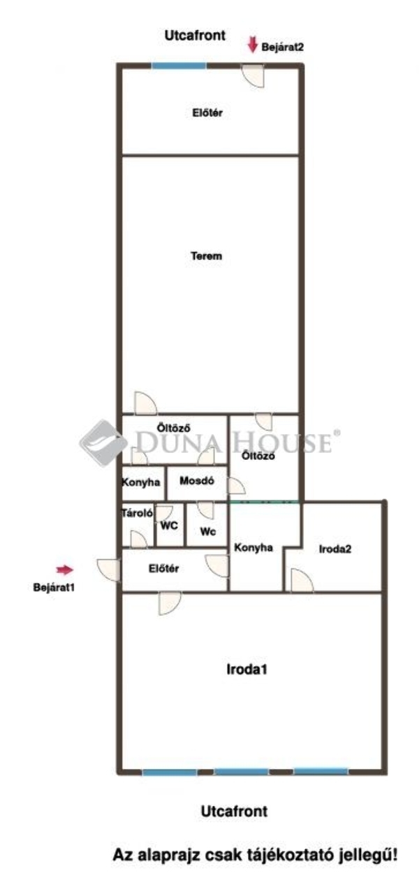 Rugalmas kialakítás: Jelenleg két külön bejáratú egységként működik (egy hangulatos jógastúdió és egy modern iroda/közösségi tér), de kis költséggel konyhán keresztül bármikor újra összenyitható.