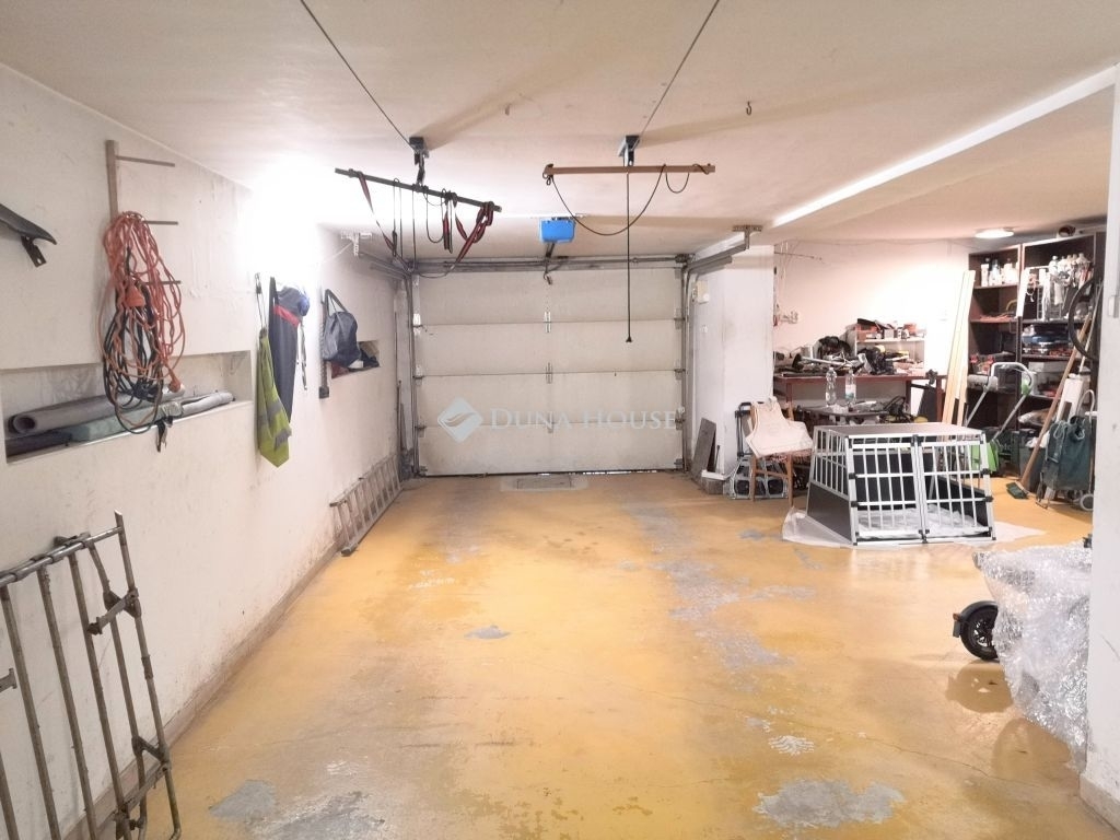 A lakószint alatt 110m2-es szuterén található, mely a lakásból is elérhető belső lépcsőházon keresztül. A szinten több tárolóhelyiség, egy kazánház, műhely-sarok, mosókonyha mellett, akár 3 autó parkolása is megoldott. A garázslehajtó a fagyos téli hónapokban fűthető, így a beállás az év minden szakában kényelmes és akadálytalan, a kapuk természetesen távirányítással nyithatóak.