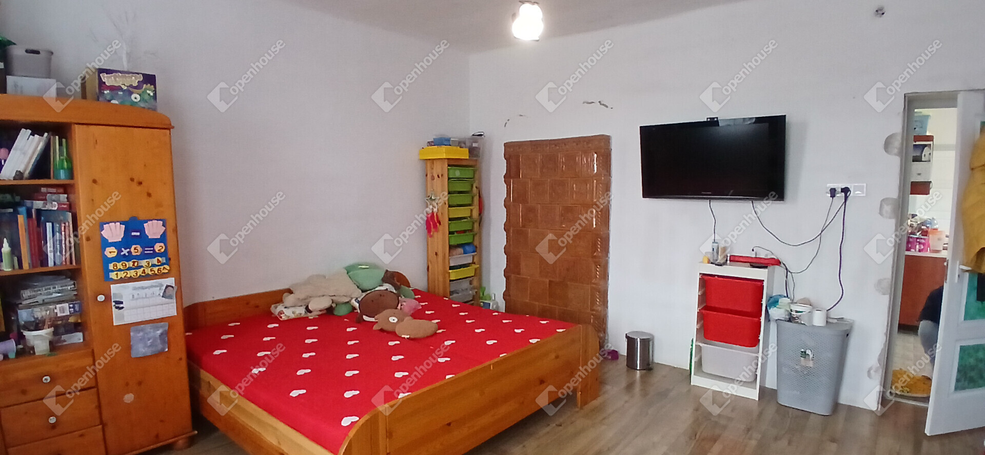 A ház cserép fedésű, födémszerkezete stukatúros fa födém.