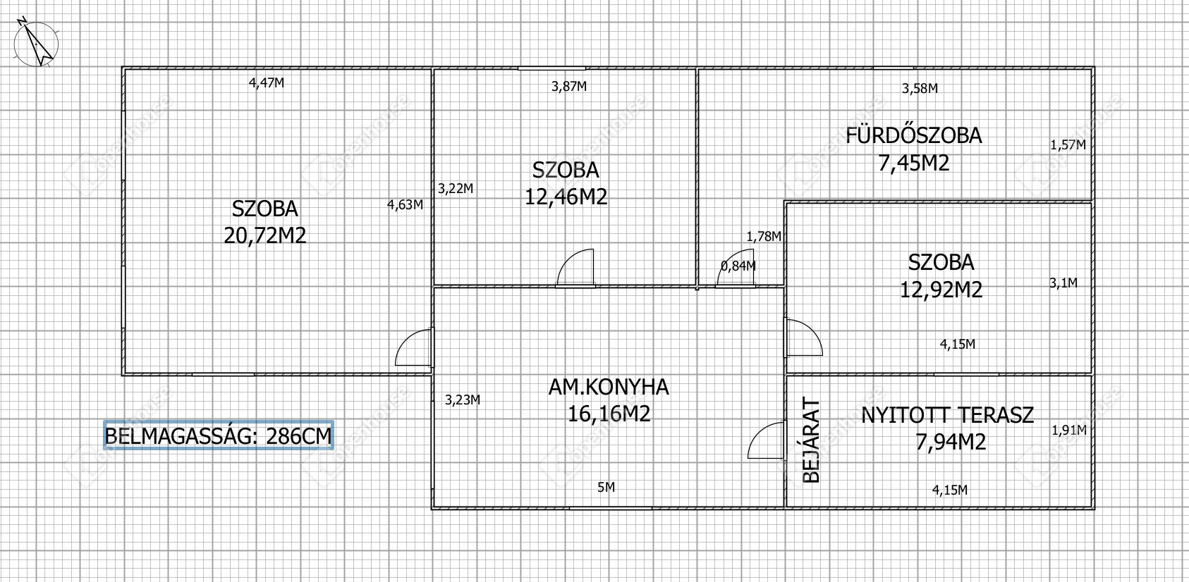 A harmadik, hátsó szoba jelenleg felújítás alatt áll. A belső munkálatok előkészítése megtörtént, azonban a hátsó fal visszafalazása még az új tulajdonos elképzeléseire vár. Ez lehetőséget ad arra, hogy az új tulajdonos saját igényei szerint alakítsa ki a helyiséget – akár gardróbként, dolgozószobaként vagy külön bejáratú lakrészként is gondolkodhat benne.