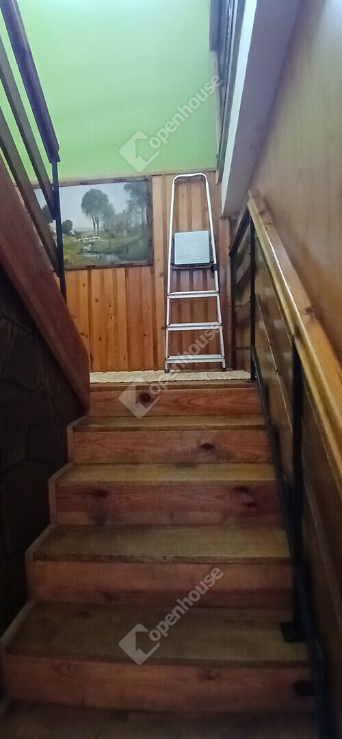 Emelet: három tágas szoba, kamra, külön WC, lépcsőház–előszoba.